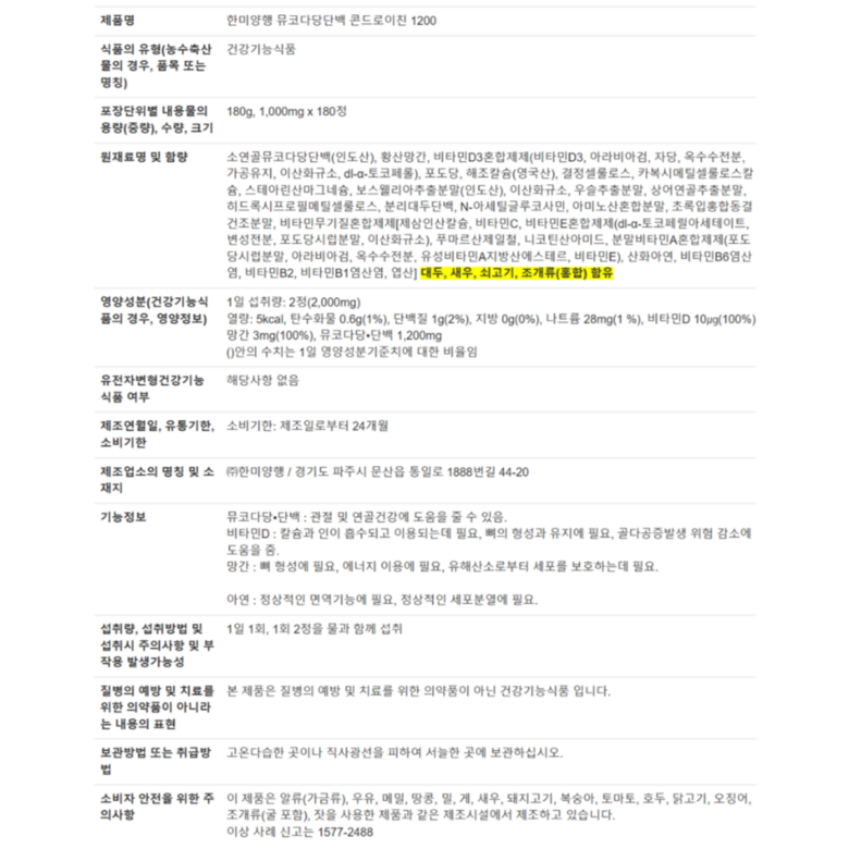 한미양행 콘드로이친 1200 1,000mg x 180정x2박스