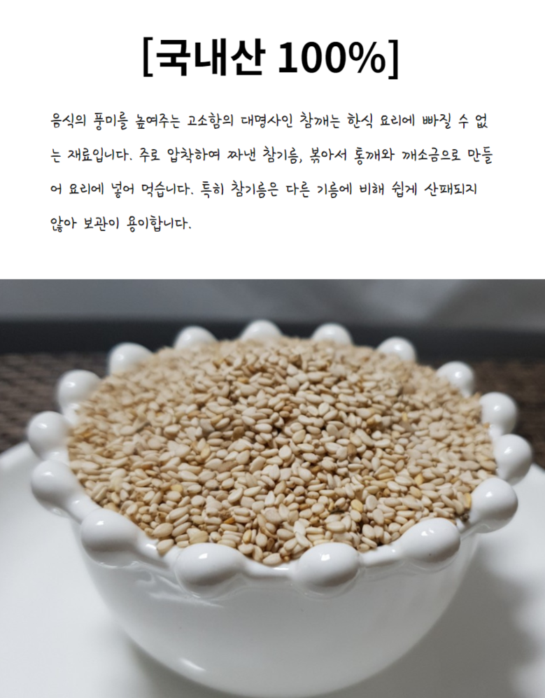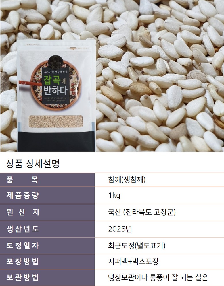 | 품목 또는 명칭 | 참깨 | 포장단위별 내용물의 용량(중량),수량,크기 | 1kg,1000g |