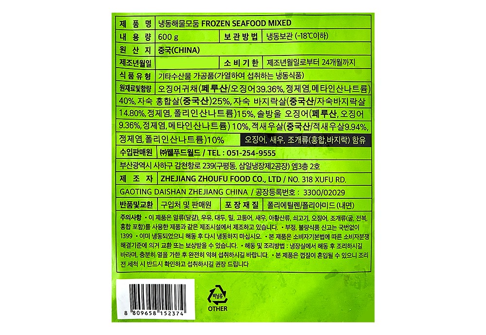 깔끔하게 손질되어 간편하게 활용하는 해물모듬