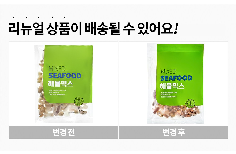 오징어귀채, 바지락살, 홍합살 등 총 5종으로 구성