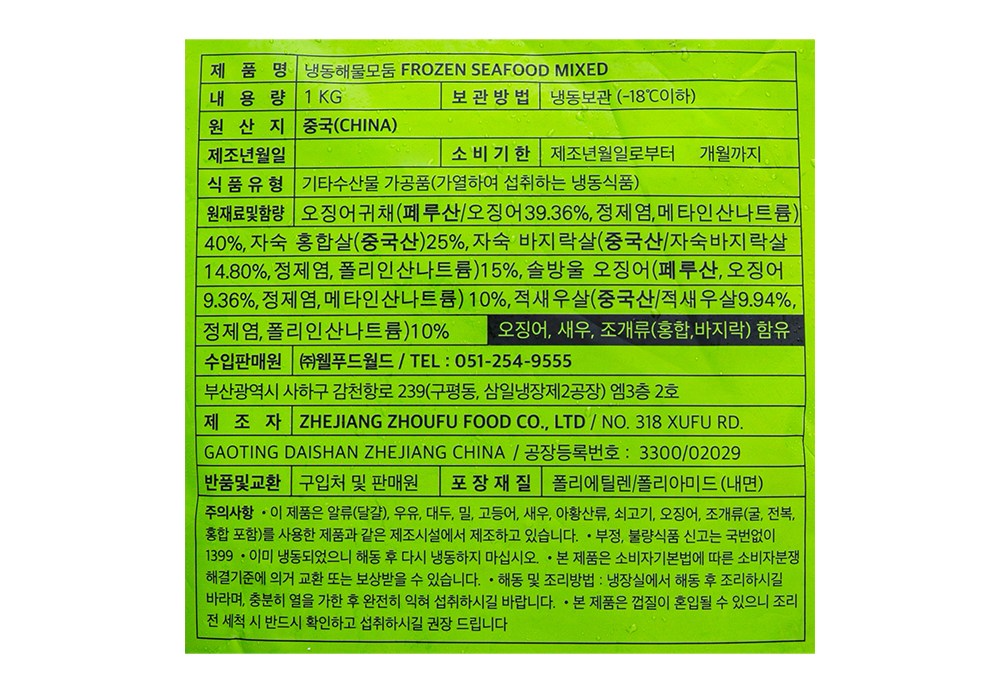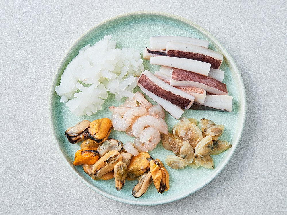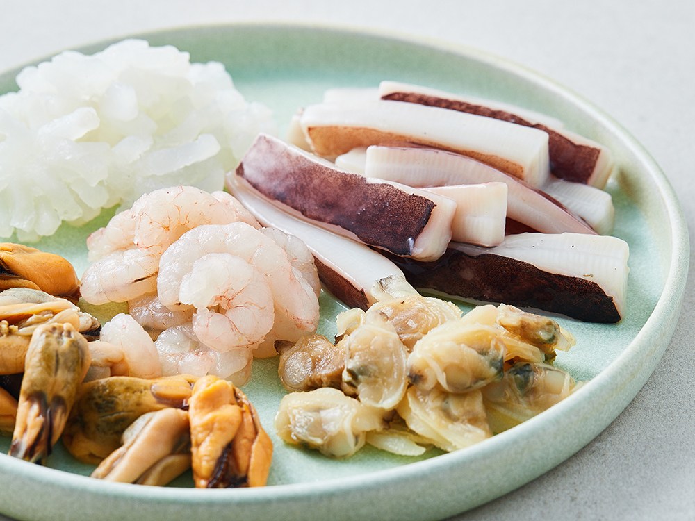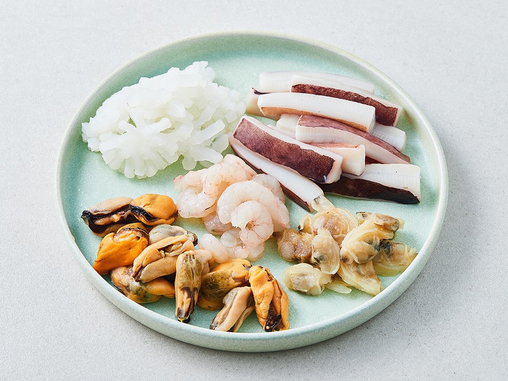 다섯 가지 해물을 먹기 좋게 손질해 담았어요. 껍데기를 벗기고 해감하는 과정 없이 해동만 하면 바로 활용할 수 있죠. 국, 찌개에 넣어 진한 바다향을 더해도 좋고, 전으로 요리해 풍성한 식감을 느껴도 좋아요.
