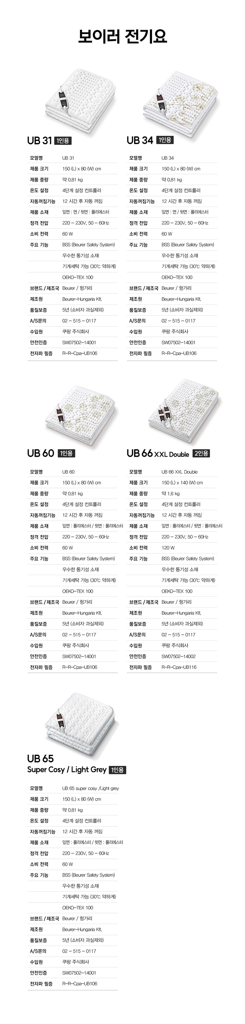 | 품명 및 모델명 | 보이러 전기요 / UB 34 | KC 인증정보 | SW07502-14001P, R-R-CPa-UB106 |