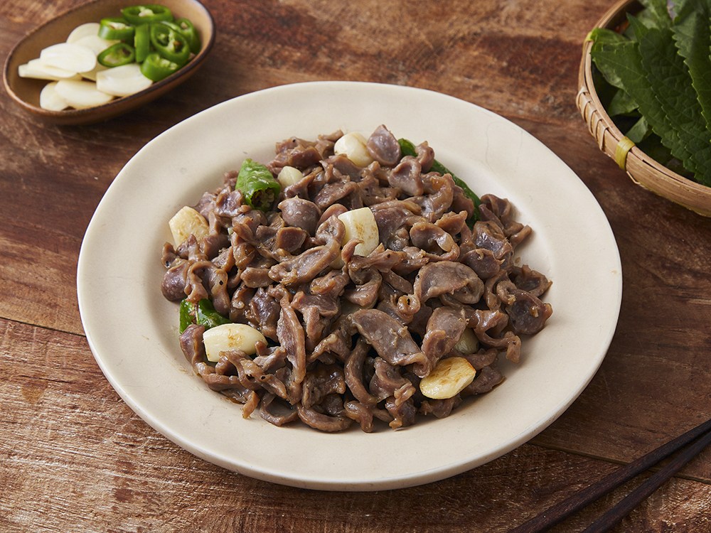 짭짤한 감칠맛이 매력적인 닭똥집볶음이에요. 넓게 펼쳐져 있어, 프라이팬에 쏙 담아 조리하기 좋아요. 쫄깃쫄깃한 닭근위와 알싸한 마늘의 조화를 한입에 만끽해보세요. 간단한 야식이나 술안주로 취향껏 즐기기 좋아요.