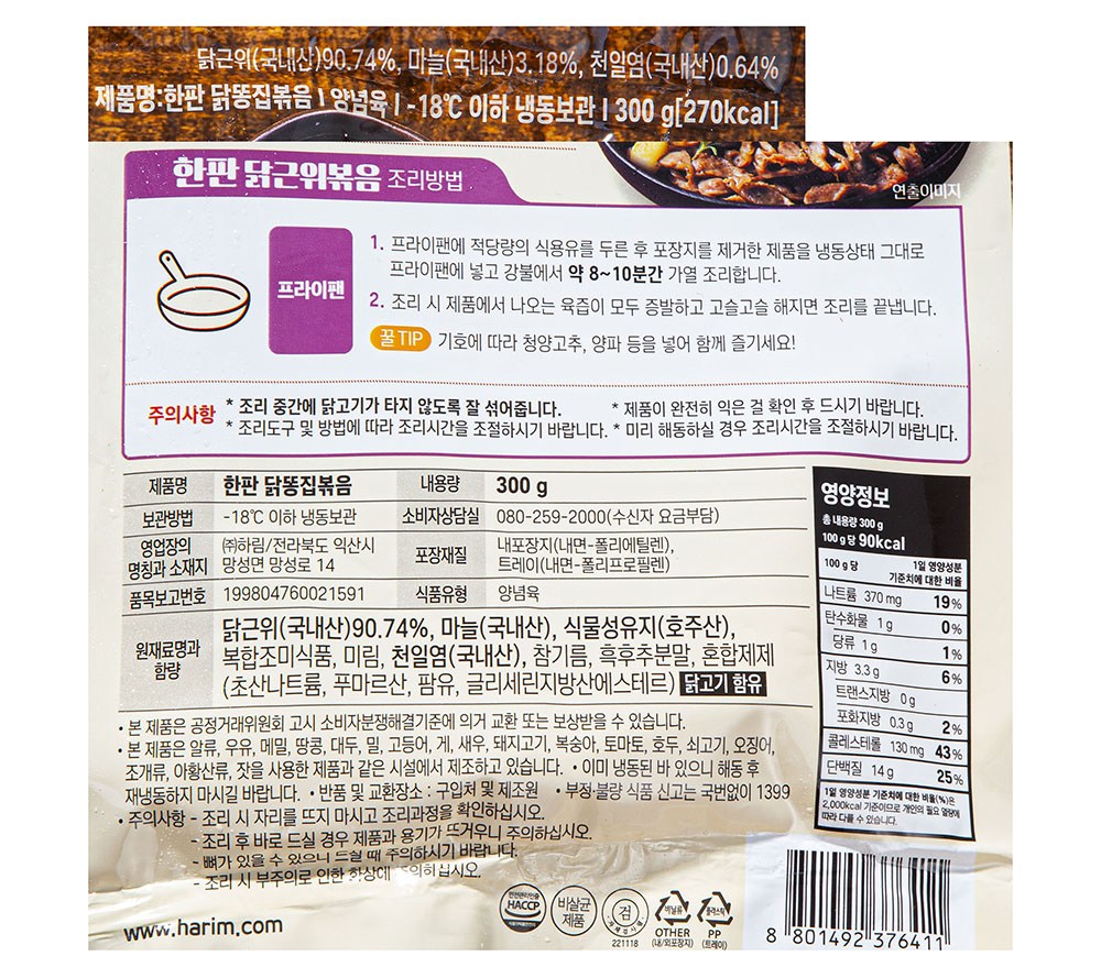 | 포장단위별 내용물의 용량(중량), 수량 | 300g x 1개입 x 2개 | 원재료명 및 함량 | 컨텐츠참조 |