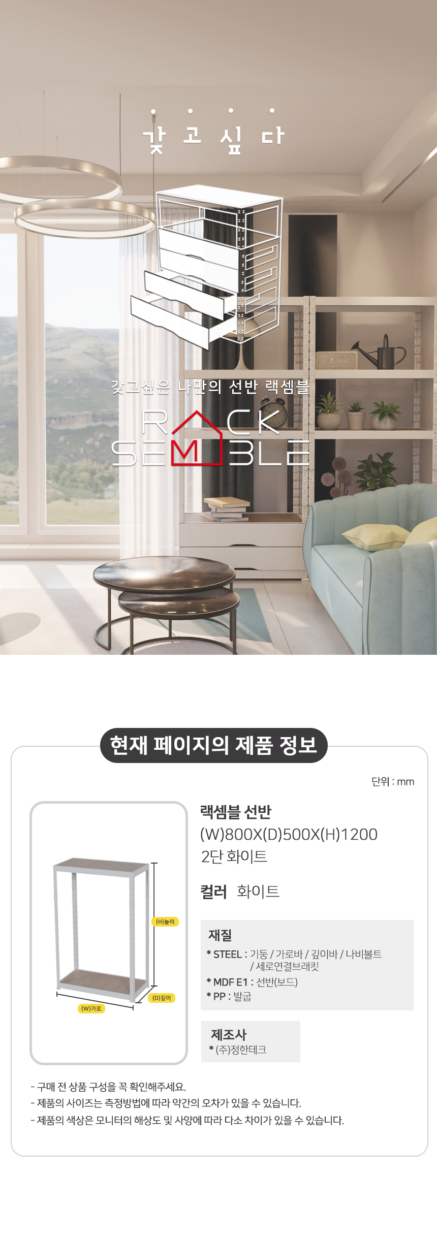 | 품명 | 랙셈블 800x500x1200 2단 화이트 | KC 인증정보 | 해당없음 |