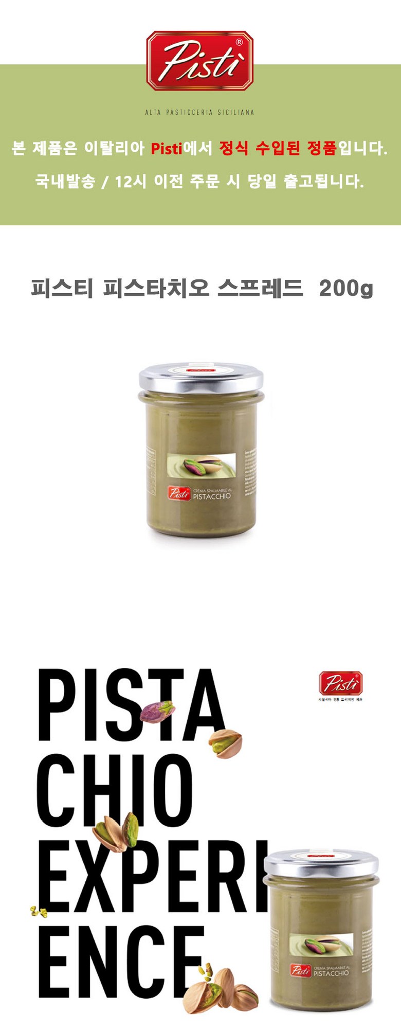 피스티 피스타치오 스프레드 두바이 쫀득쿠키 크림 페이스트 잼 두바이초콜릿 재료 카다이프 마카롱재료 이탈리아 Pisti 카페, 200g, 1개