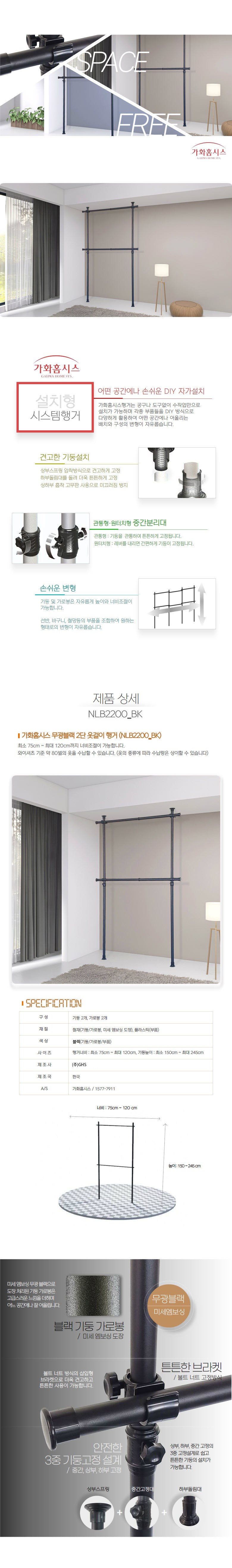 | 품명 | 가화홈시스 무광블랙 2단 옷걸이 행거 (NLB2200_BK) 블랙 75~120 * 150~245 | KC 인증정보 | 해당없음 |
