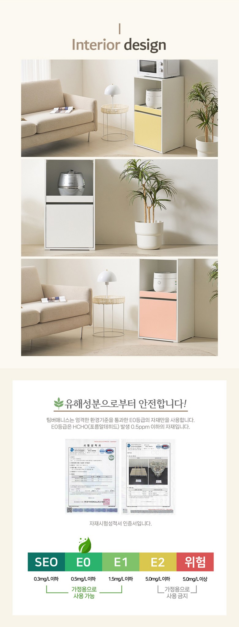 | 주요 소재 | 측면 상단 유광 LPM, MDF, PB | 제조자(수입자) | 팀버애니스 |
