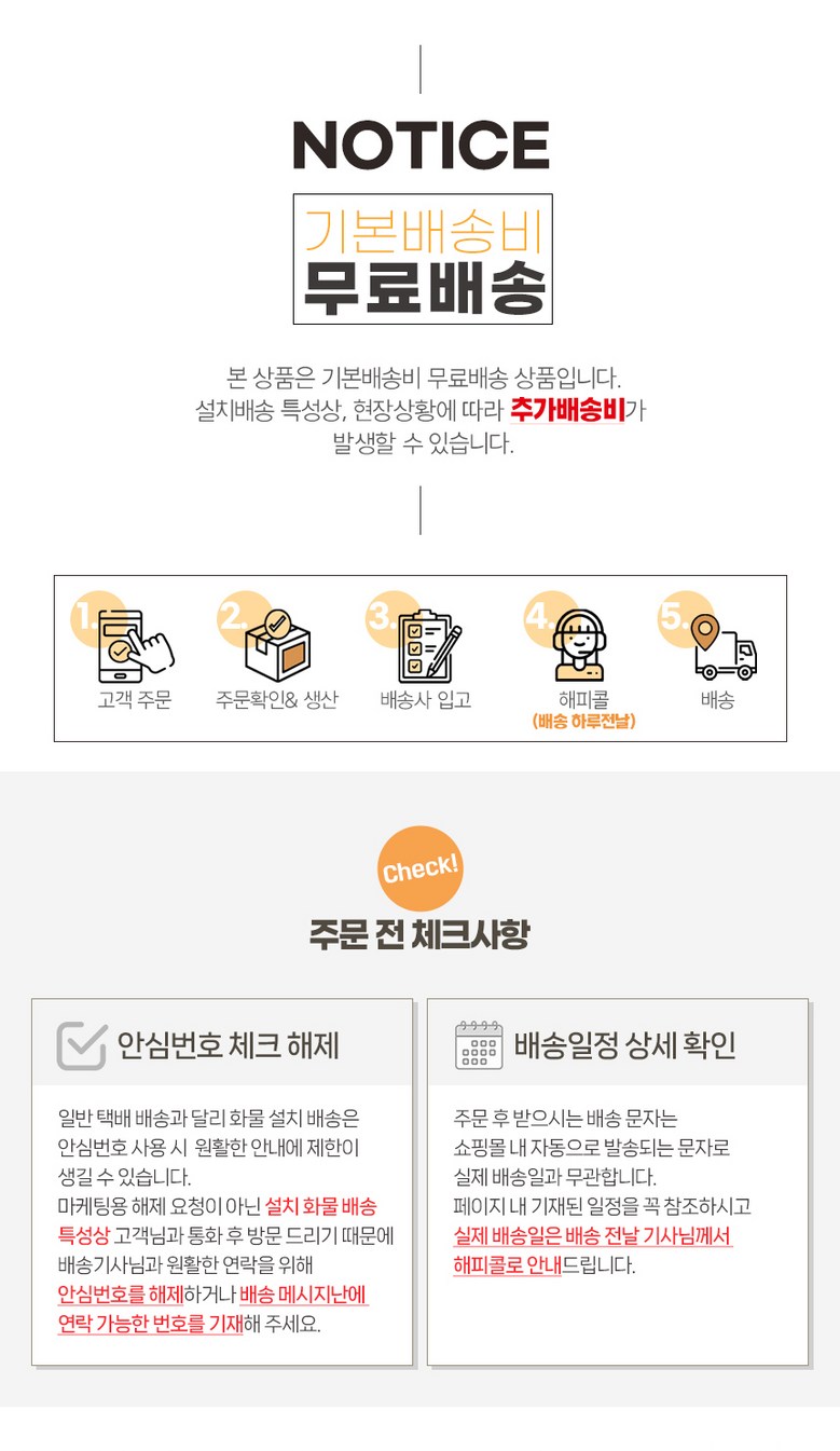 - ㆍ모니터 해상도의 차이로 인해 색상이나 이미지가 실제와 달라, 고객이 단순 변심으로 교환/반품을 무료로 요청하는 경우