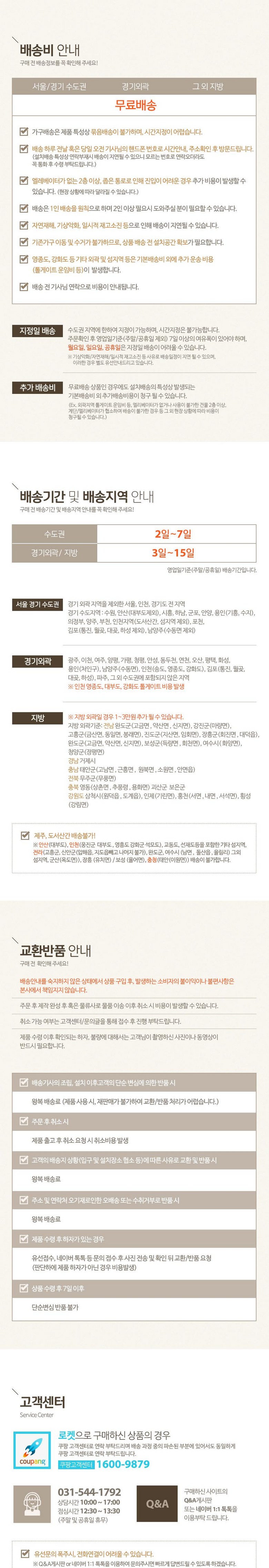 | 소비자상담 및 교환반품 문의 | 쿠팡고객센터 1577-7011 배송 및 환불/교환에 대한 문의는 마이쿠팡-고객센터 내 상담하기를 이용해주세요. | ||
