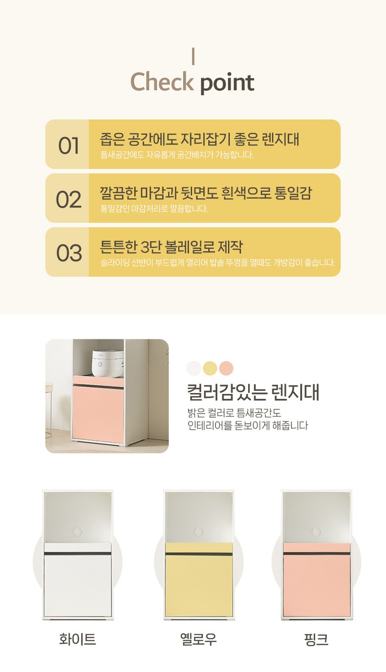 | 색상 | 화이트, 옐로우, 핑크 | 구성품 | 렌지대 (1EA/완제품) |