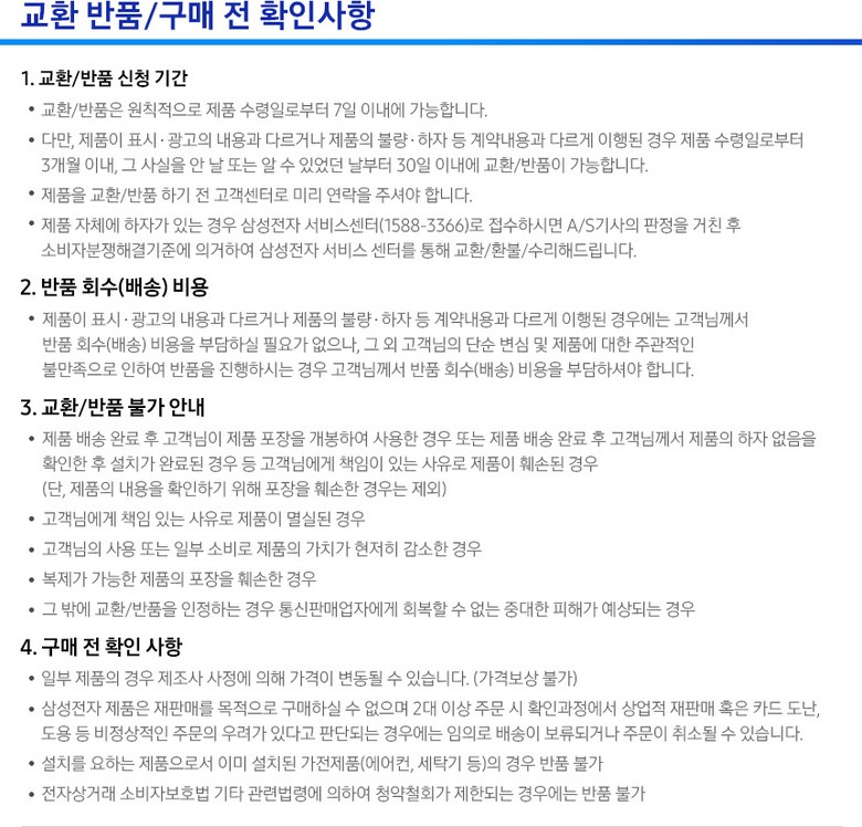 - ㆍ교환/반품에 관한 일반적인 사항은 판매자가 제시사항보다 관계법령이 우선합니다.