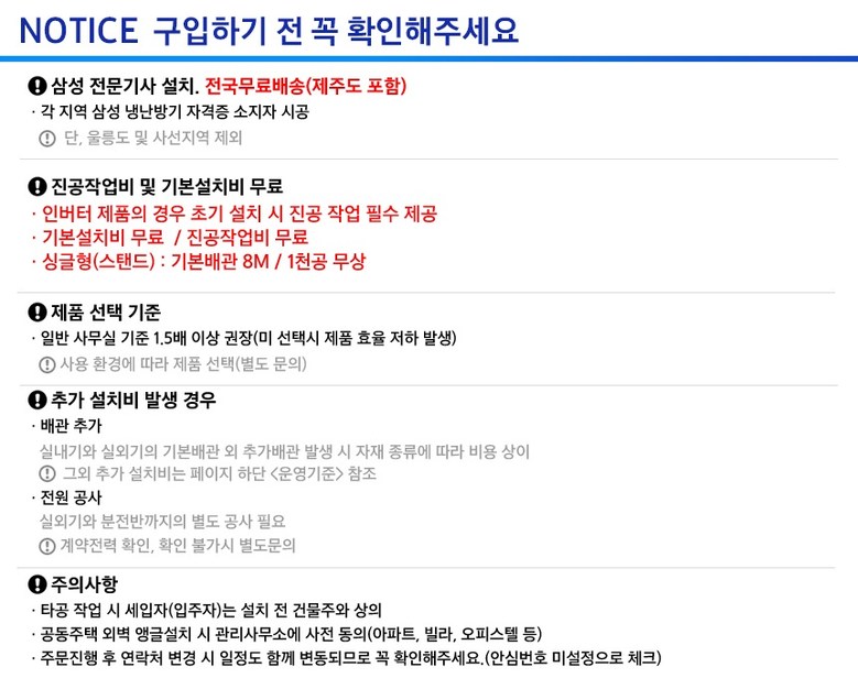 - ㆍ제조사의 사정 (신모델 출시 등) 및 부품 가격 변동 등에 의해 무료 교환/반품으로 요청하는 경우