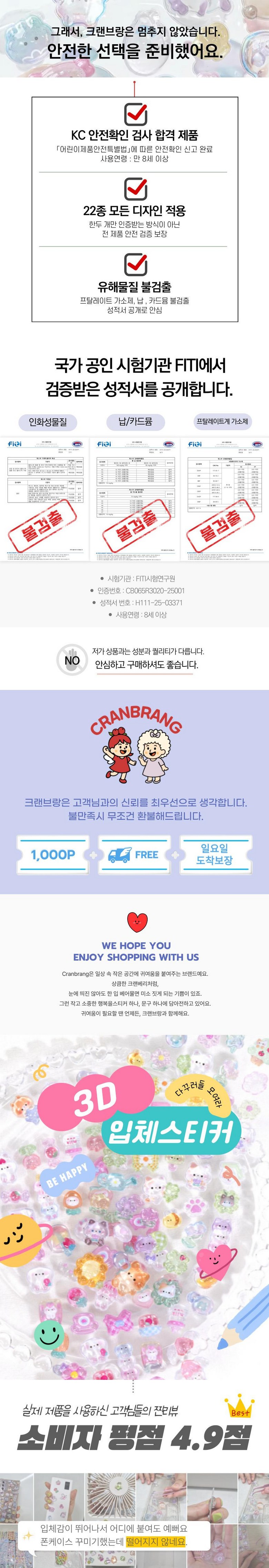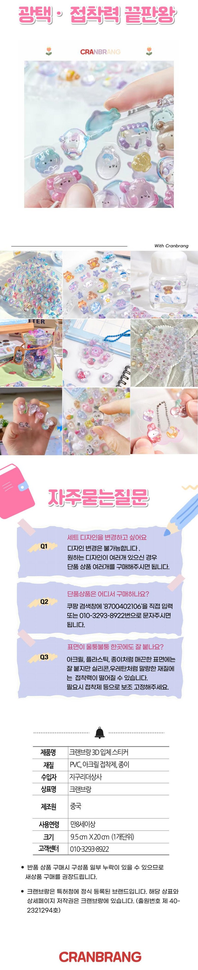 | 품명 및 모델명 | 크랜브랑 DIY 다꾸 3D 입체 스티커 | 인증/허가 사항 | CB065R3020-25001 |