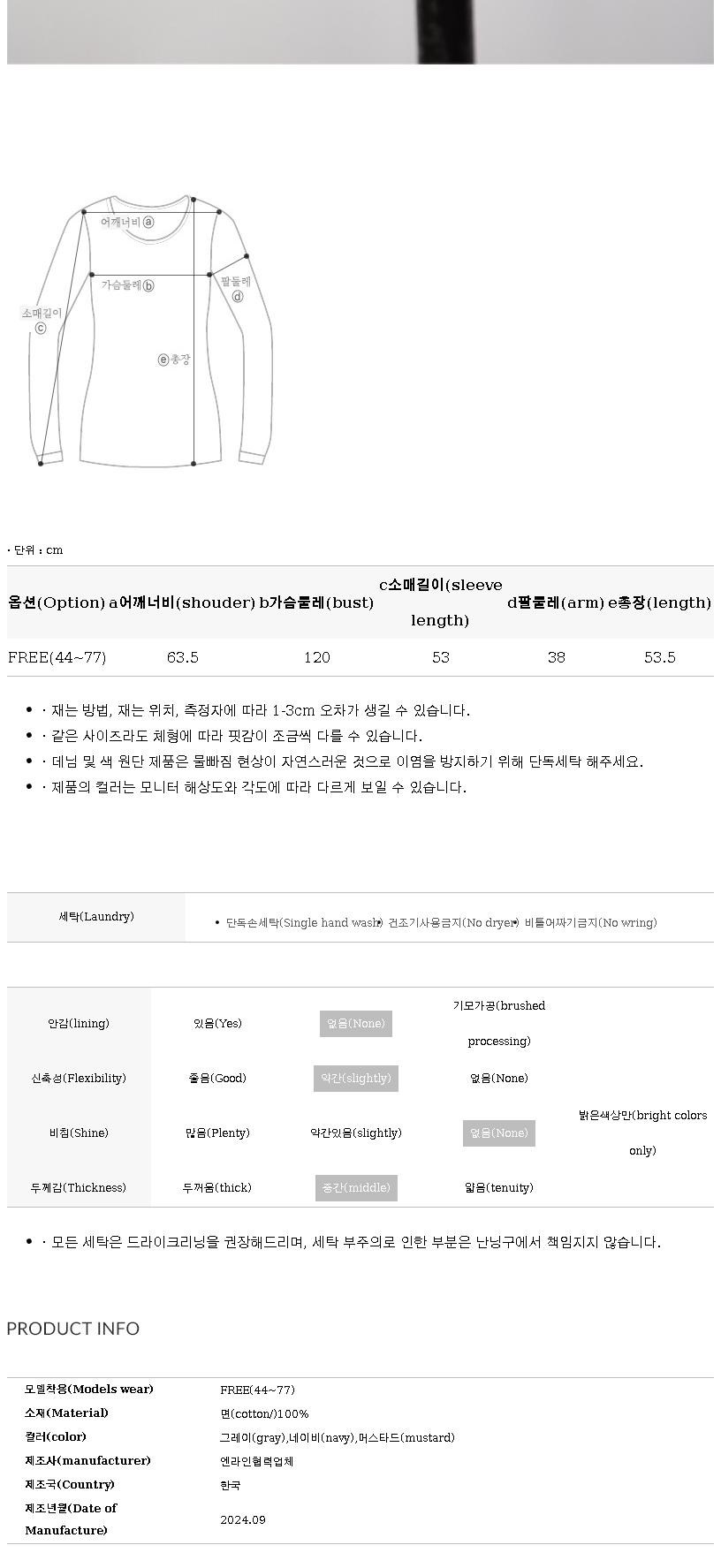 | 제조국 | 한국 | 세탁방법 및 취급시 주의사항 | 컨텐츠 참조 |