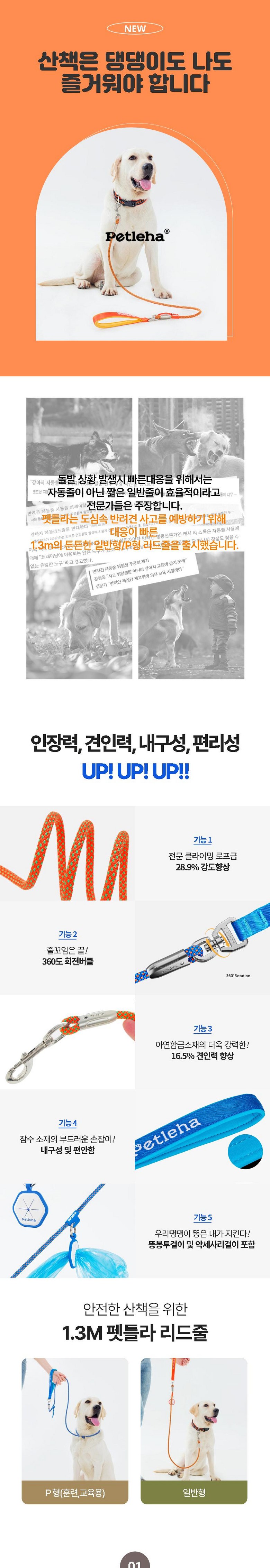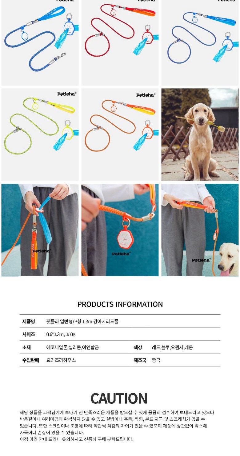 요리죠리하우스 펫틀라 1.3m 일체형/ P형리드줄 훈련용 교육용 강아지훈련줄, p형레드, 1개