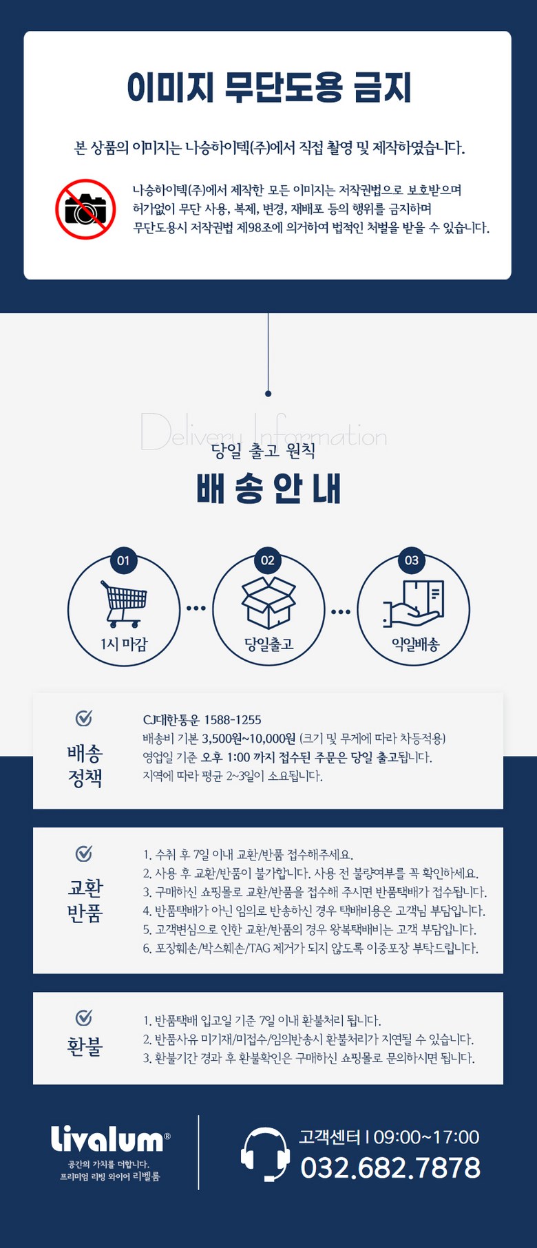 - ㆍ모니터 해상도의 차이로 인해 색상이나 이미지가 실제와 달라, 고객이 단순 변심으로 교환/반품을 무료로 요청하는 경우