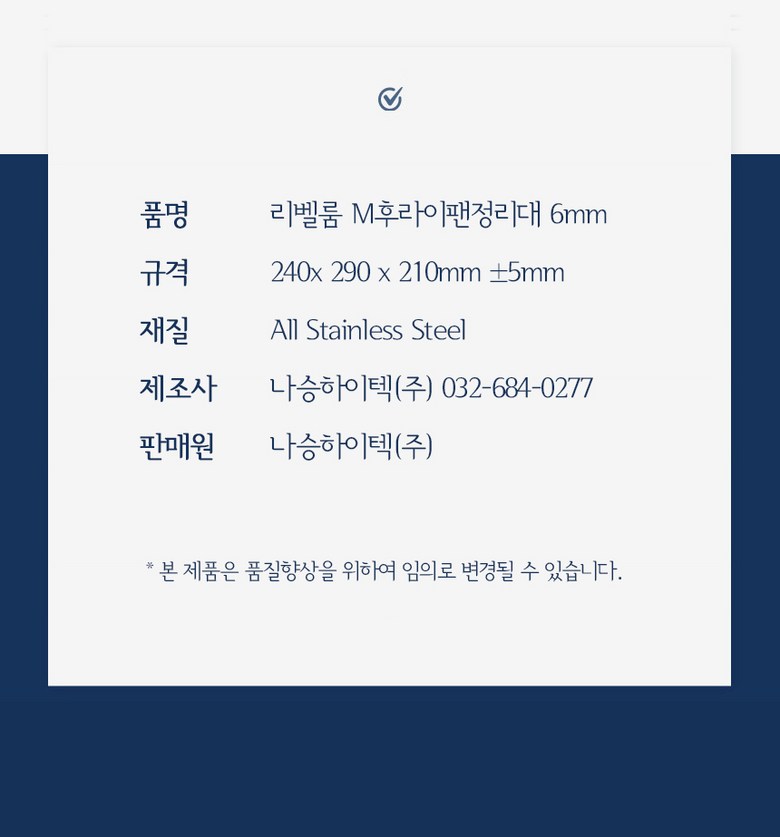 | 구성품 | 별도표기 | 크기 | 240 X 290 X 210mm |