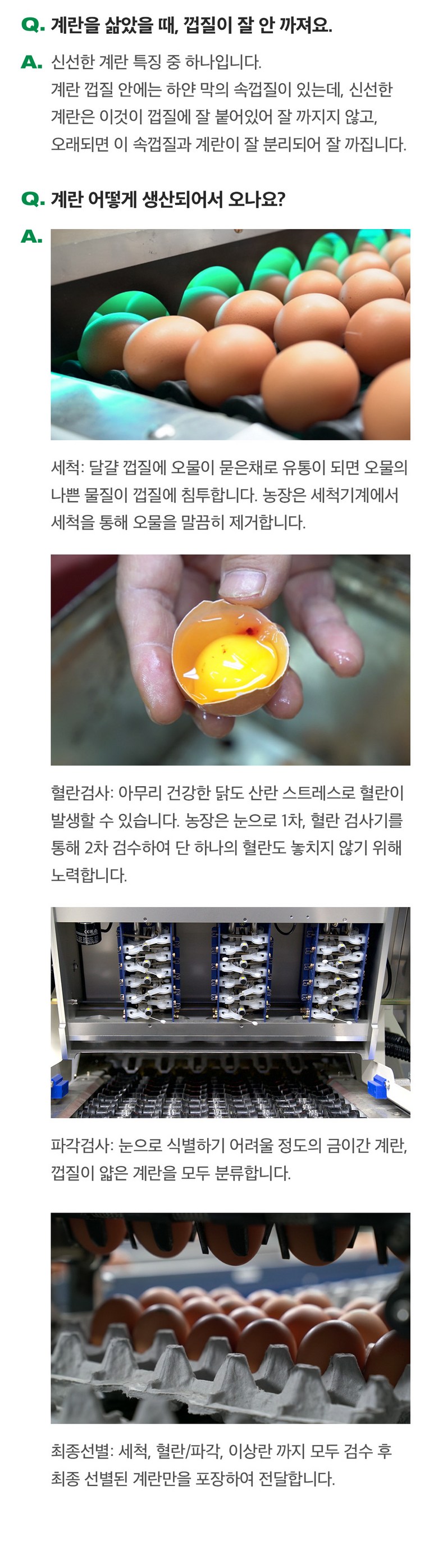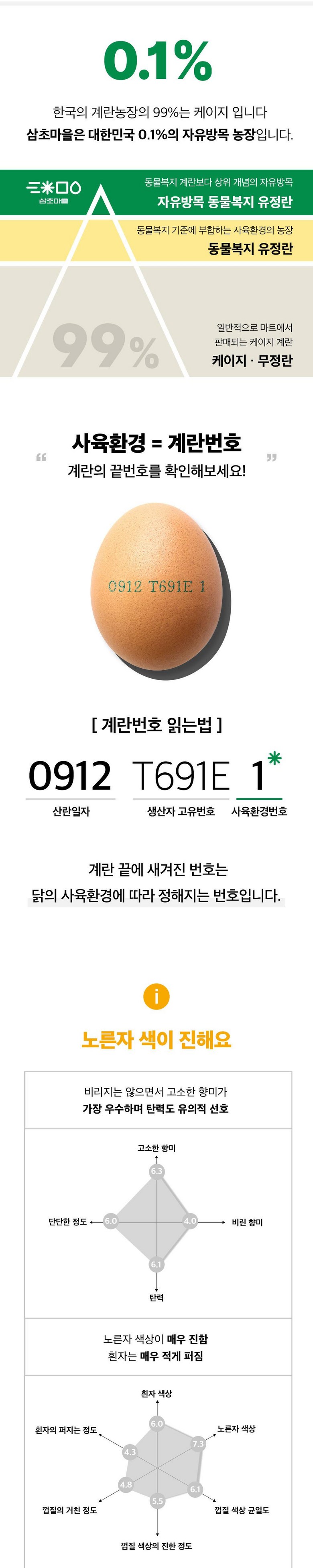 | 제조연월일, 소비기한 또는 품질유지기한 | 제조연월일: 2025년 09월 이후 매일 산란유통기한: 산란일로부터 30일산란 당일 출고 | 세부 품목군별 표시사항 | 해당없음 |