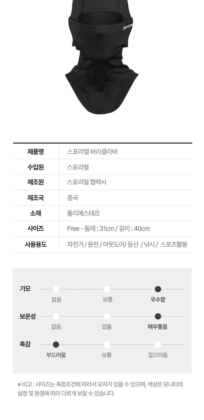 | 종류 | 스포츠 바라클라바 | 소재 | 폴리에스테르 |