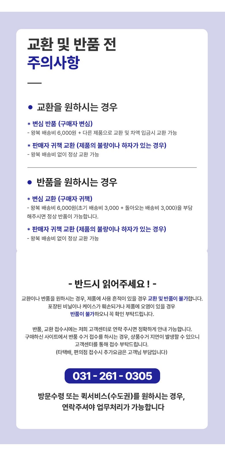 - ㆍ교환/반품에 관한 일반적인 사항은 판매자가 제시사항보다 관계법령이 우선합니다.