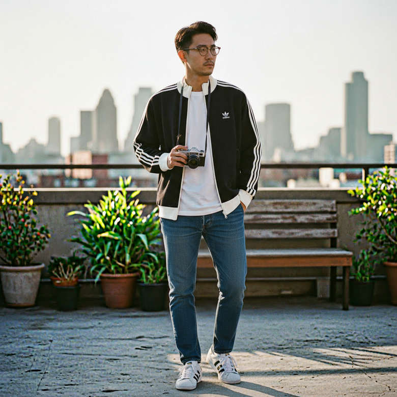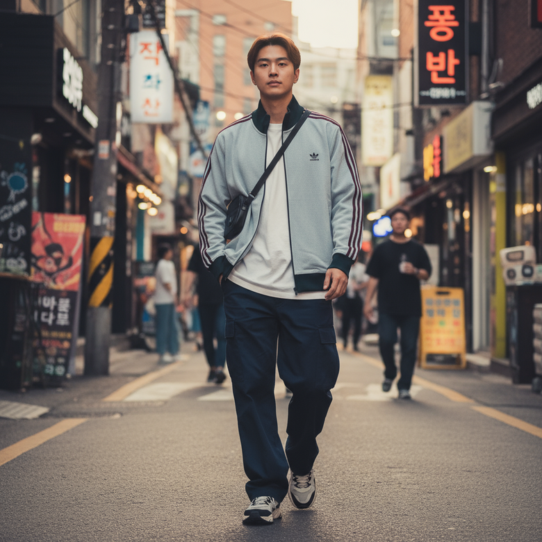 와플 패턴의 은은한 질감이 돋보이는 스타일리시 트랙탑