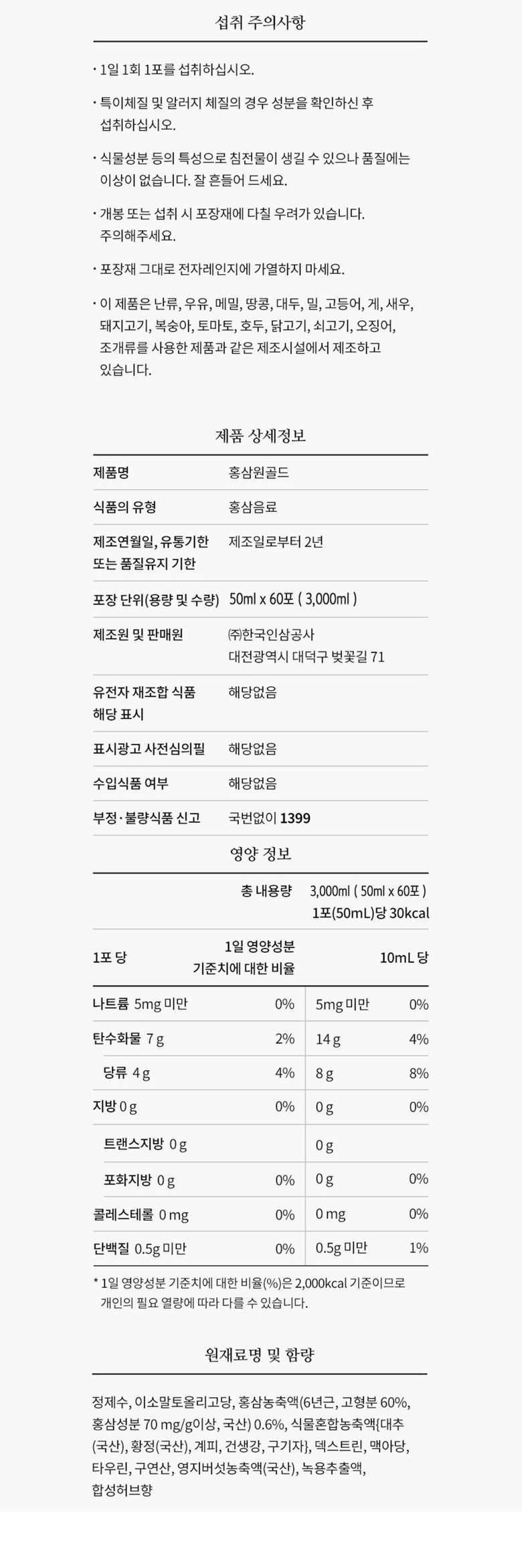 | 원료명 및 함량 | 상품 상세페이지 참조 | 영양정보 | 상품 상세페이지 참조 |