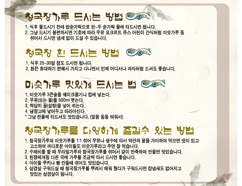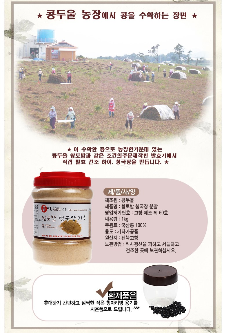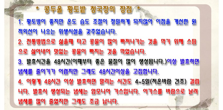 | 제품명 | 청국장 | 식품의 유형 | 장류 |