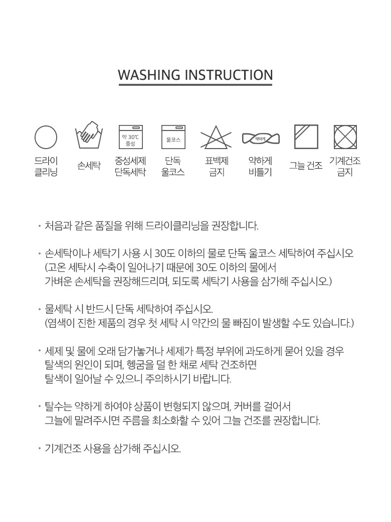 - 세탁방법: 손세탁권장