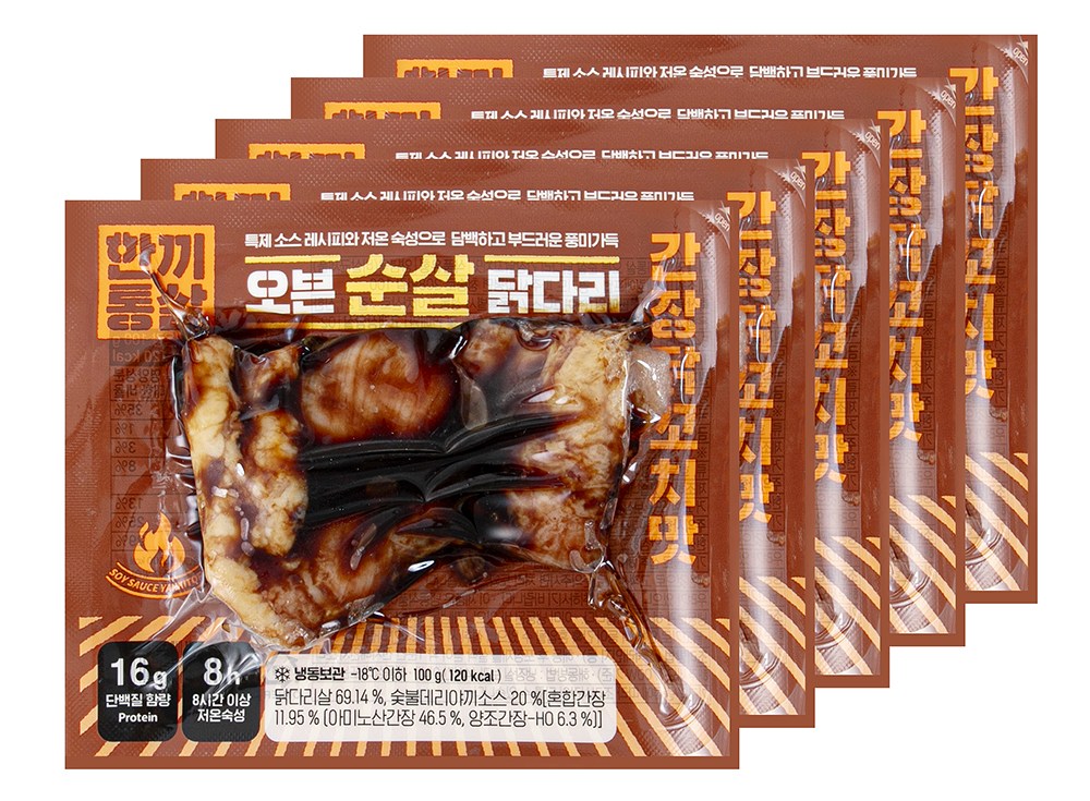 8시간 이상 저온 숙성해 부드러운 오븐 순살닭다리 간장닭꼬치맛이에요. 닭다리살의 야들야들한 식감이 매력적인데요. 달짝지근한 감칠맛에 자꾸만 젓가락이 향한답니다. 밥반찬으로 즐겨도 좋고요. 작게 찢어서 샐러드의 토핑으로 활용해도 잘 어울려요.