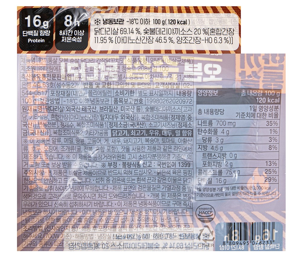 | 포장단위별 내용물의 용량(중량), 수량 | 100g x 10개 | 원재료명 및 함량 | 컨텐츠 참조 |