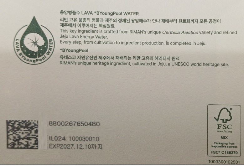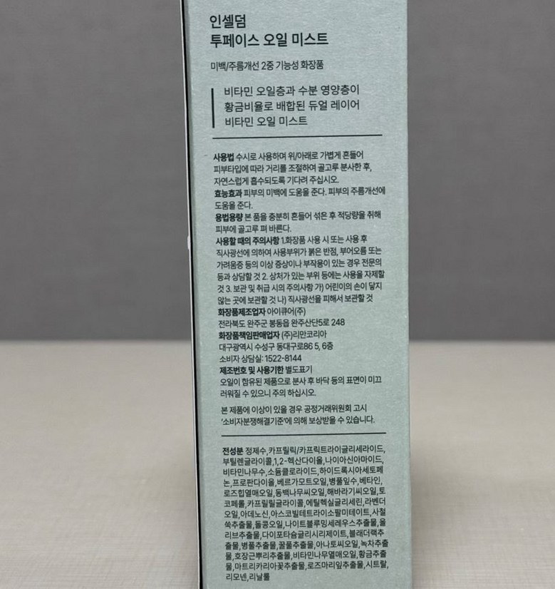 | 화장품제조업자, 화장품책임판매업자 및 맞춤형화장품판매업자 | 상품 상세페이지 참조 | 제조국 | 상품 상세페이지 참조 |