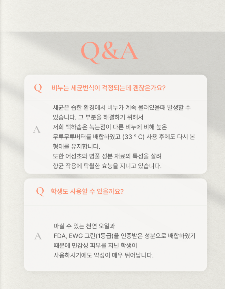 - 가격, 판매자, 교환/환불 및 배송 등 해당 상품 자체와 관련 없는 문의는 고객센터 내 1:1 문의하기를 이용해주세요.
