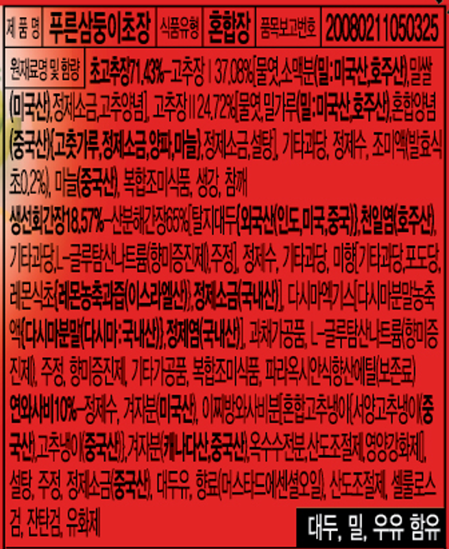 | 제품명 | 컨텐츠 참조 | 식품의 유형 | 컨텐츠 참조 |