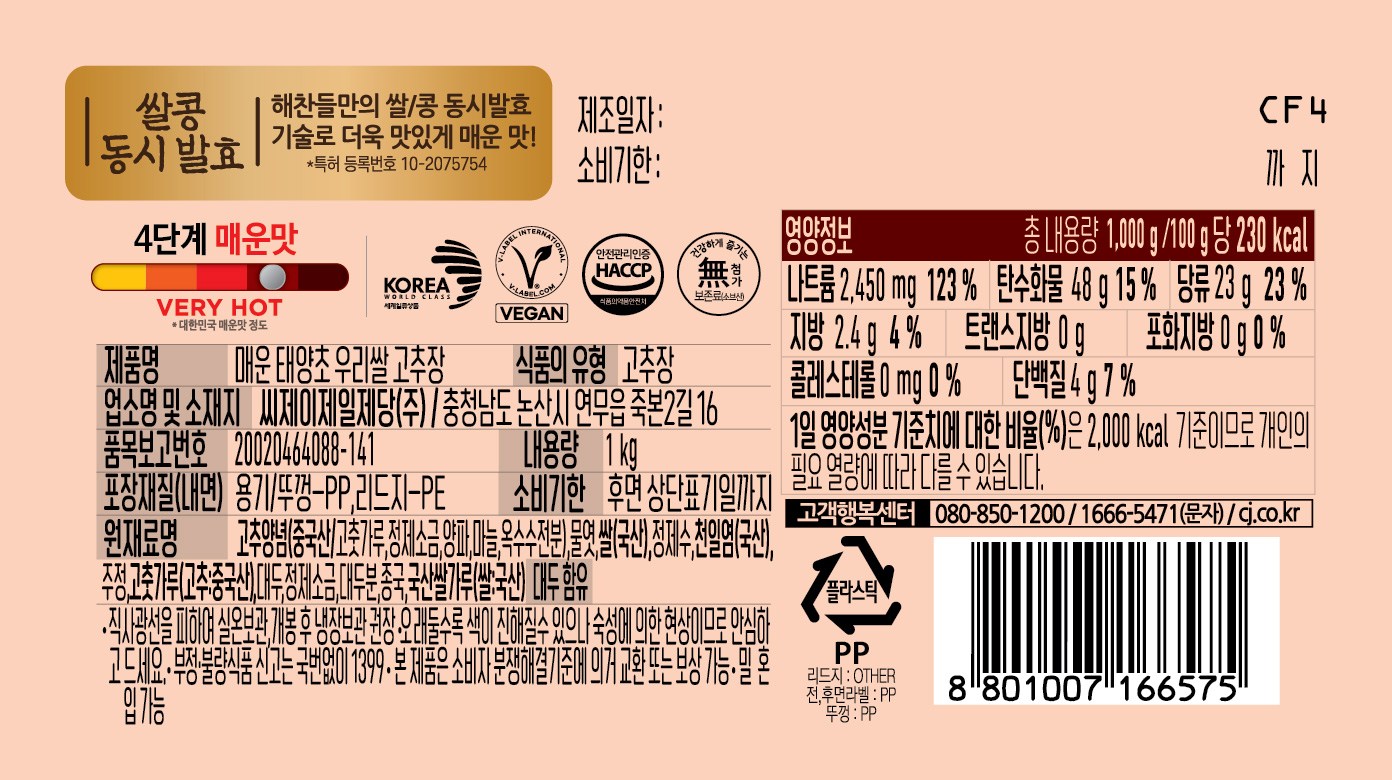 | 포장단위별 내용물의 용량(중량), 수량 | 1kg x 3개 | 원재료명 및 함량 | 컨텐츠 참조 |