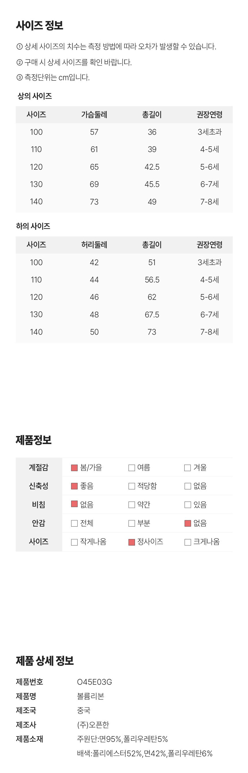 | 품명 및 모델명 | 오즈키즈 여아용 볼륨리본 상하복 세트 블랙 130 | KC 인증정보 | 유/KC마크 |