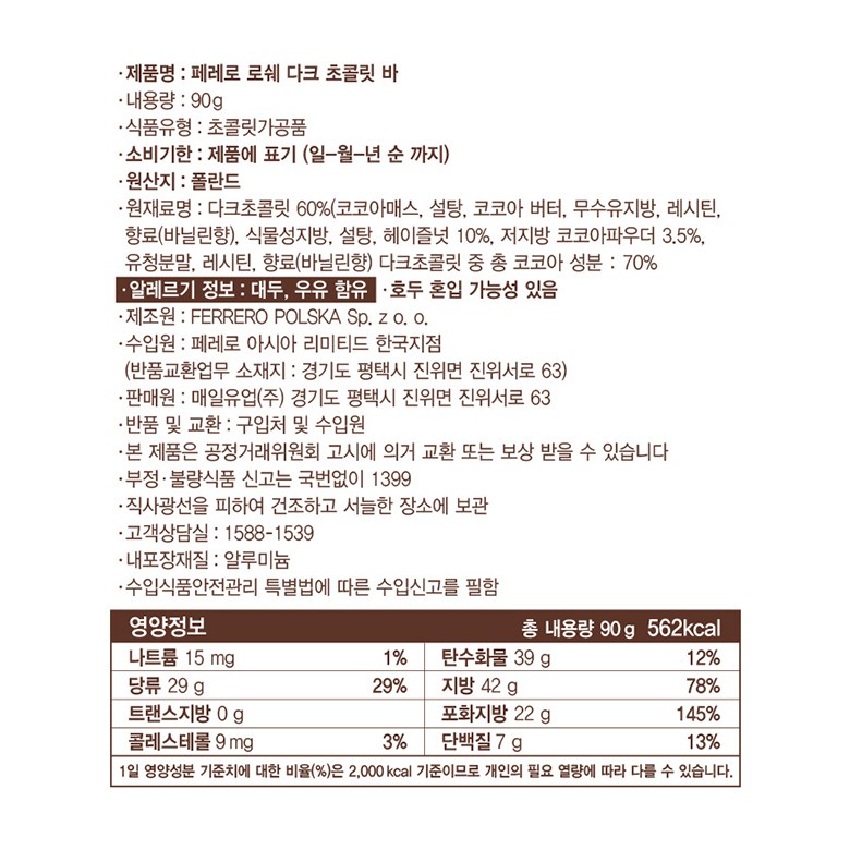 | 생산자 및 소재지 | 컨텐츠 참조 | 제조연월일, 소비기한 또는 품질유지기한 | 소비기한(또는 유통기한) : 2026년 05월 04일 이거나 그 이후인 상품 제조년월일 : 2025년 07월 09일 이후인 제조상품 |