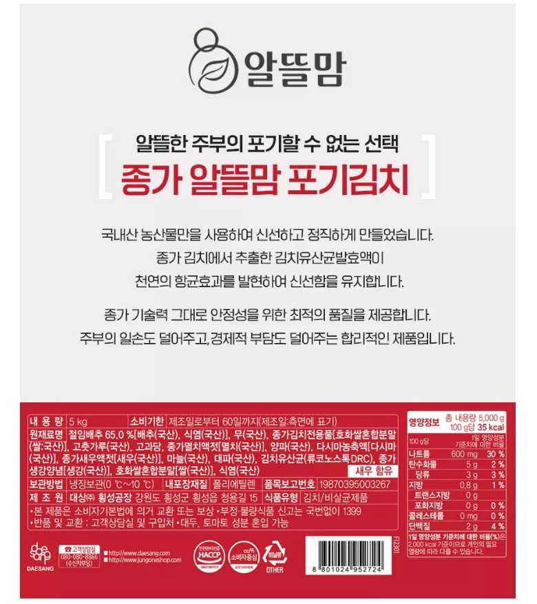 | 제조연월일, 소비기한 또는 품질유지기한 | 상품 상세페이지 참조 | 세부 품목군별 표시사항 | 상품 상세페이지 참조 |
