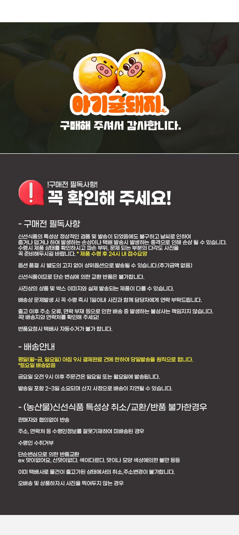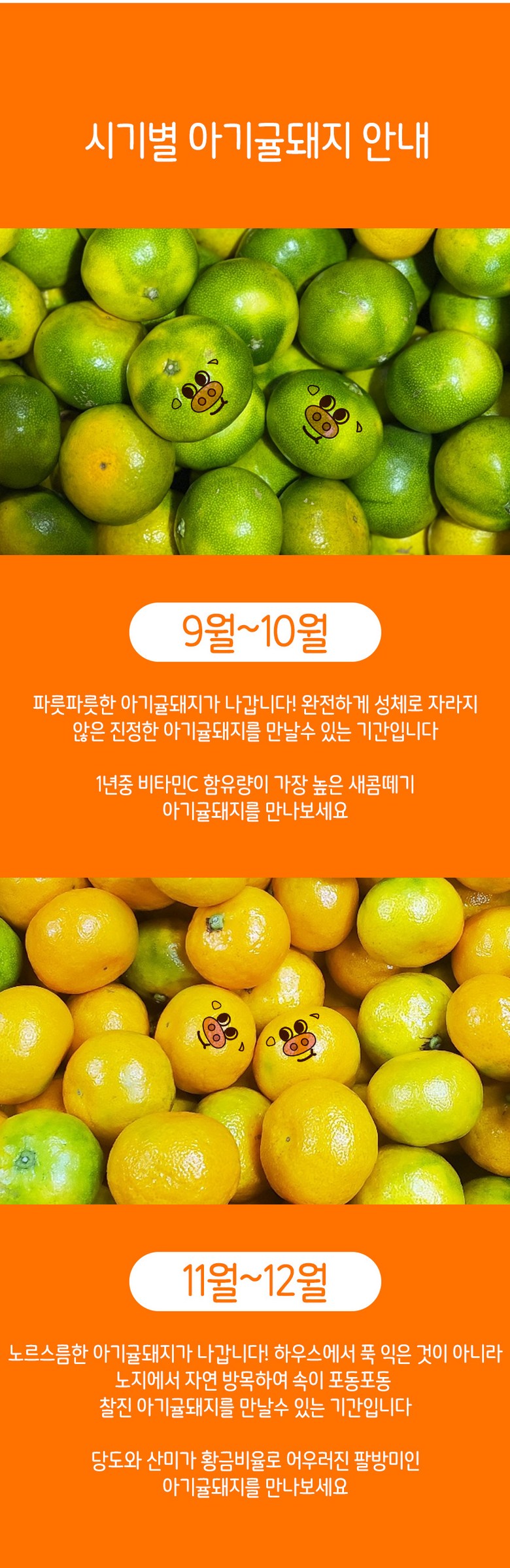 | 품목 또는 명칭 | 오늘출발 통통하게 살이 오른 고당도 제주 특산품 토실토실 아기귤돼지 | 포장단위별 내용물의 용량(중량),수량,크기 | 상품 페이지 참조 |