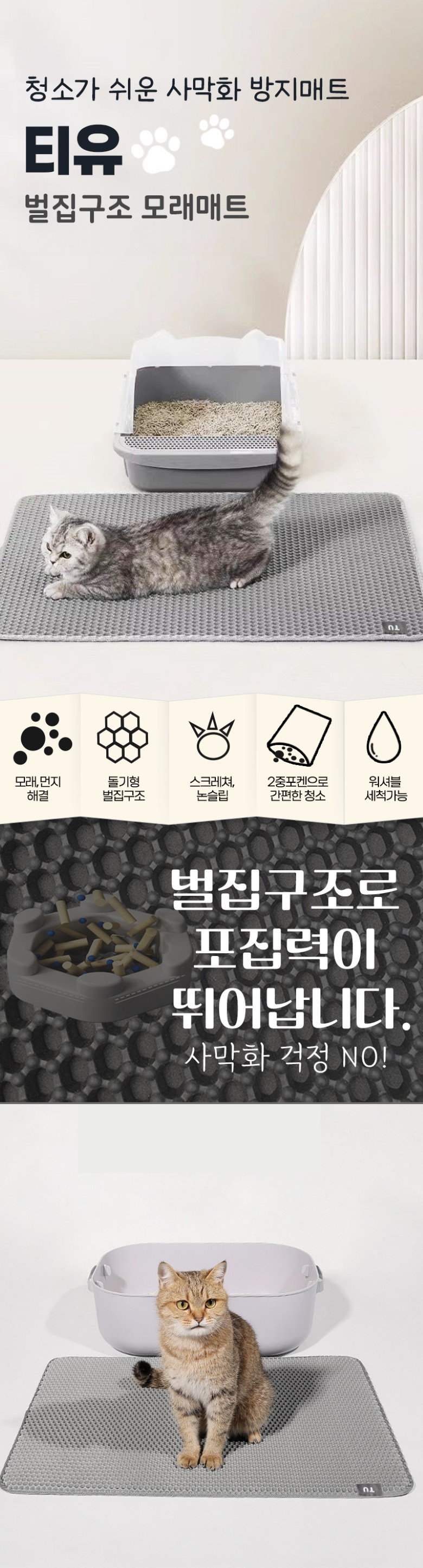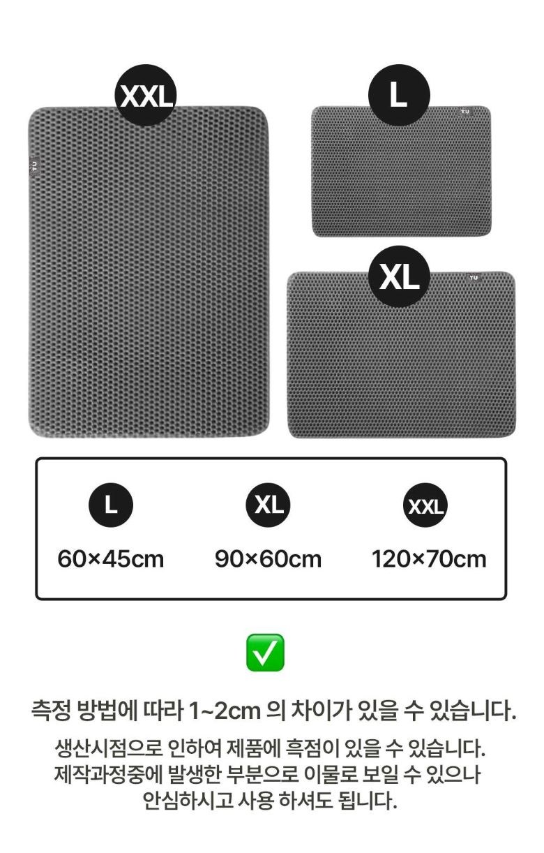 | 품명 및 모델명 | 티유 고양이 사막화방지 화장실 벌집모양 모래매트 | 인증/허가 사항 | 해당없음 |