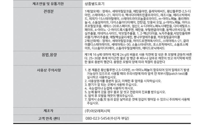 | 용량(중량) | 상품 상세페이지 참조 | 제품 주요 사양 | 모든모발 |