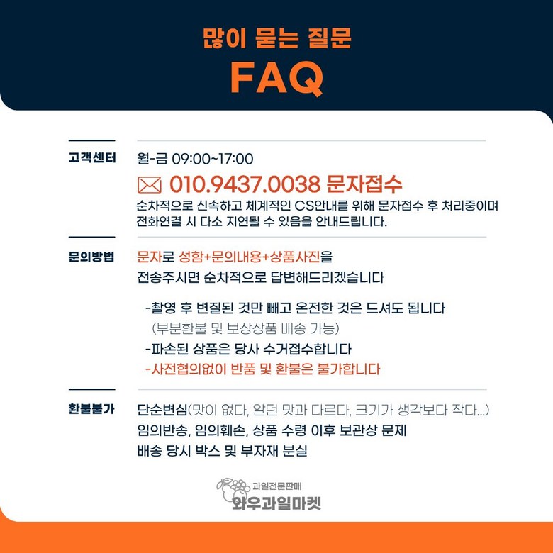 - 상품문의 및 후기게시판을 통해 취소나 환불, 반품 등은 처리되지 않습니다.