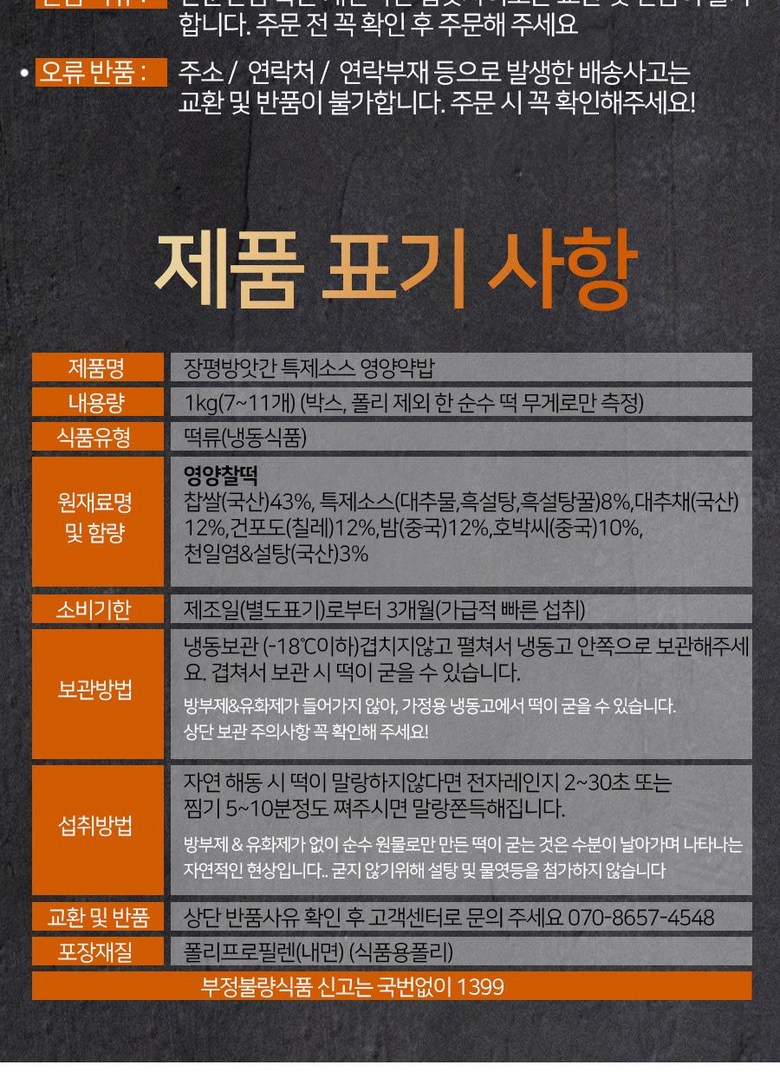 | 생산자 및 소재지 | 상품 상세페이지 참조 | 제조연월일, 소비기한 또는 품질유지기한 | 별도표시 |