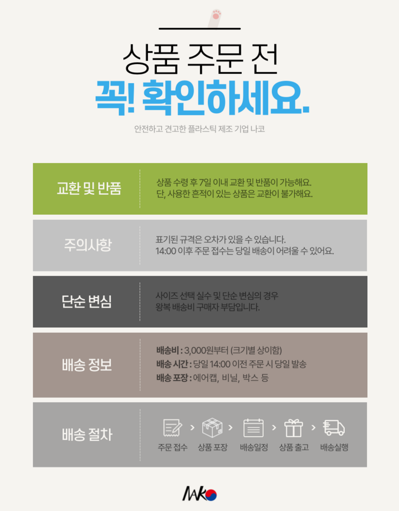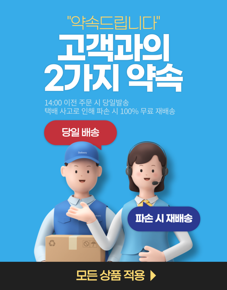 - ㆍ모니터 해상도의 차이로 인해 색상이나 이미지가 실제와 달라, 고객이 단순 변심으로 교환/반품을 무료로 요청하는 경우