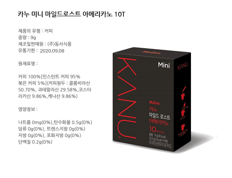| 제품명 | 상품 상세페이지 참조 | 식품의 유형 | 상품 상세페이지 참조 |