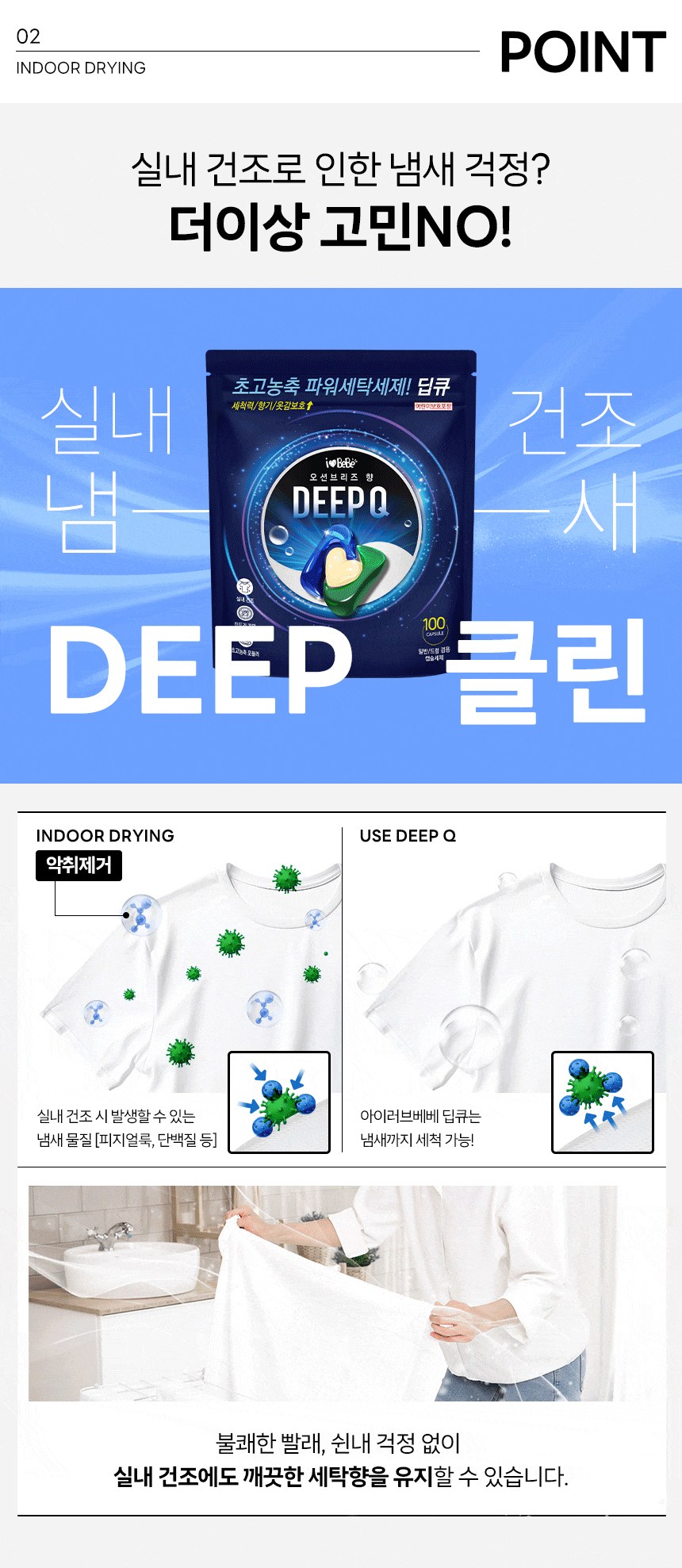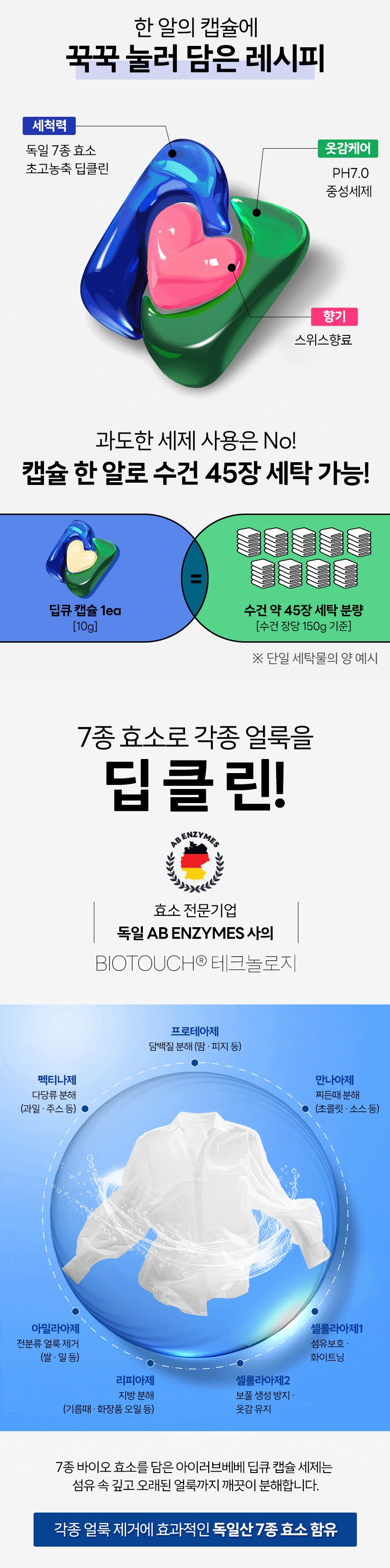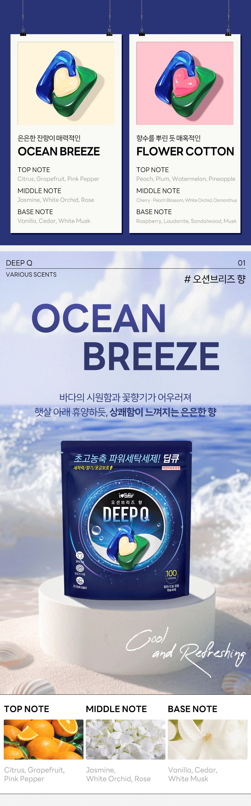 | 품목 및 제품명 | 세탁세제/ 아이러브베베 딥큐 캡슐세제 오션브리즈향 | 용도(표백제의 경우 계열을 함께표시) 및 제형 | 섬유용,신발용 / 캡슐형 |