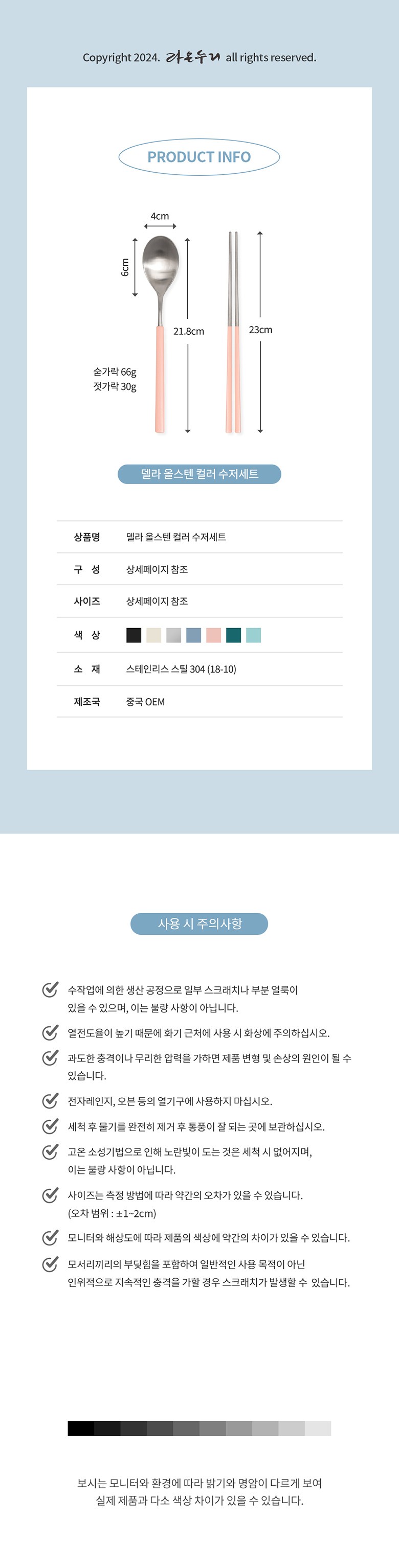 | 품명 및 모델명 | 스크래치 없는 델라 올스텐 컬러 수저세트 딥블랙 | 재질 | 상세페이지 참조 |