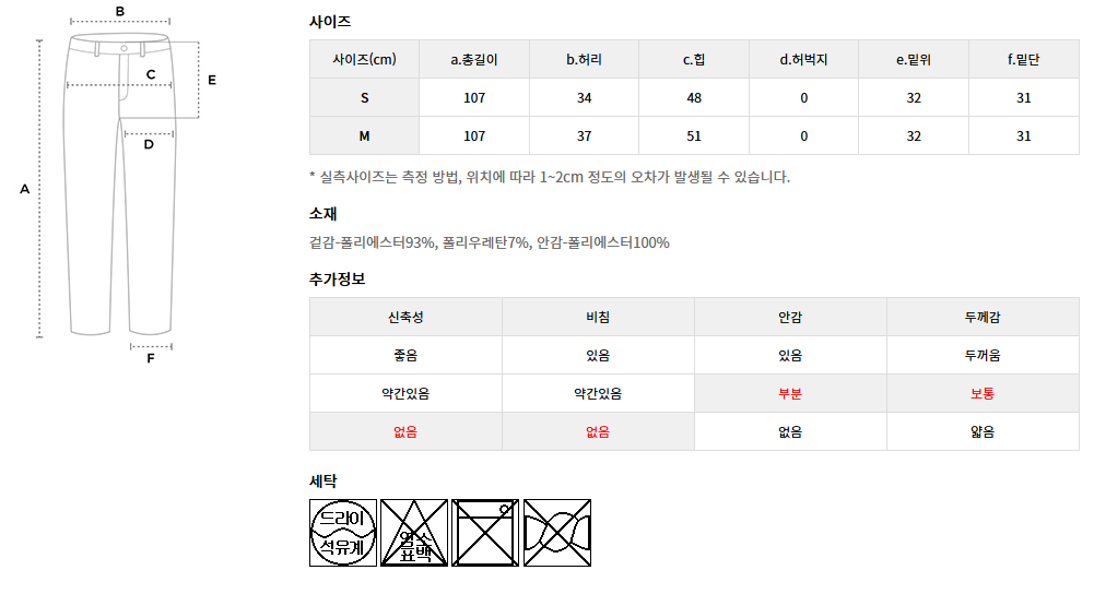 - 하의 사이즈: 여성 M