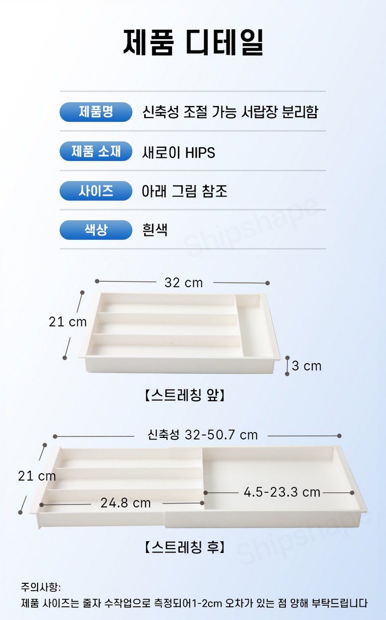 신축성 조절 가능 서랍장 분리함