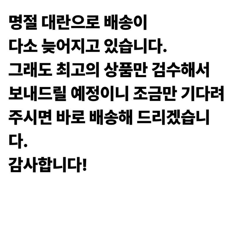 | 배송기간 | ㆍ도서산간 지역 등은 배송에 3-5일이 더 소요될 수 있습니다. - 천재지변, 물량 수급 변동 등 예외적인 사유 발생 시, 다소 지연될 수 있는 점 양해 부탁드립니다. | ||